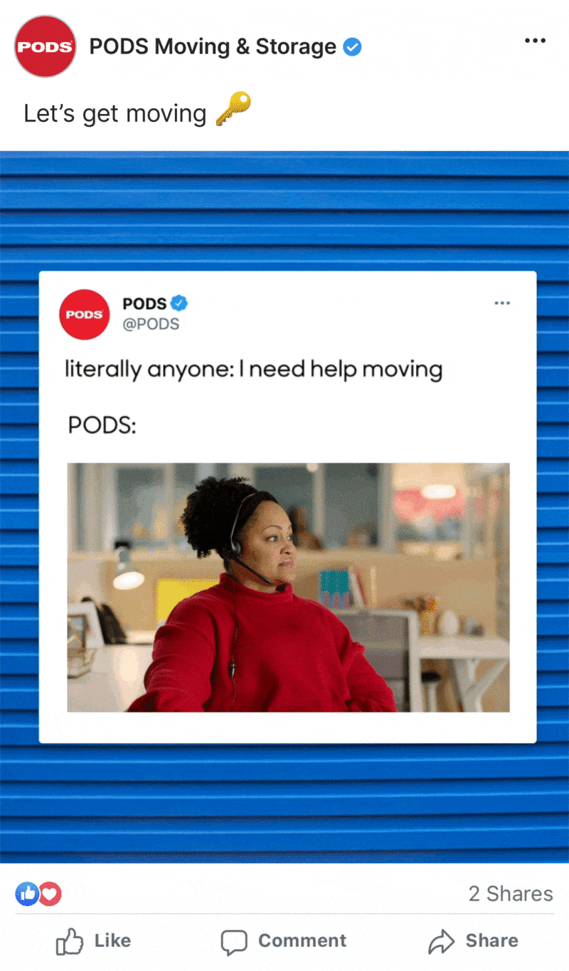 Our team led a brand overhaul for PODS Moving and Storage. Extensive consumer research led to the new tagline and positioning, “PODS, your personal moving and storage team” to payoff the above and beyond, personalized customer experience.